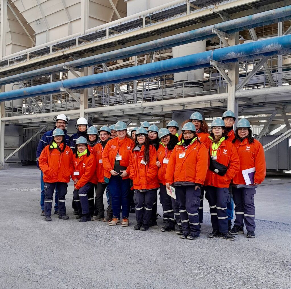 La capacitación incluyó recorridos por distintos sectores de la planta, entre ellos las instalaciones de solidificación de aluminio, las salas de electrólisis, la planta de tratamiento de humos PTH5 y una de las estaciones internas que forman parte de la red de monitoreo de la calidad del aire.
